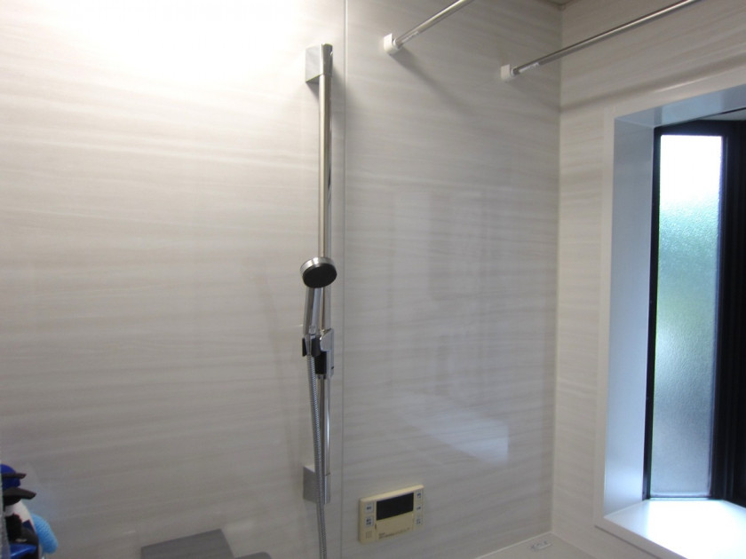 暖かい浴室にしたいとのご要望に、タカラスタンダードの浴室をご提案。ショールームでその温かさを実感していただき決定しました。浴室の広さは規格サイズでは少し小さく、サイズ調整可能な、ぴったりサイズグランスパに。ランドリーパイプは今までと同じ2本取付け、更に小柄のお客様に使いやすいよう、マグネットのパイプフックを低めの位置にも付けました。手摺タイプのシャワーバー、入口の段差も無く、バリアフリーの浴室となりました。浴室暖房乾燥機、補助金を活用した内窓、洗面室には壁付け暖房機を設置し、暖かい浴室です。