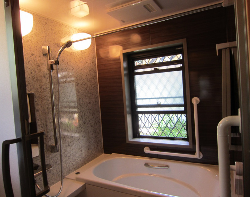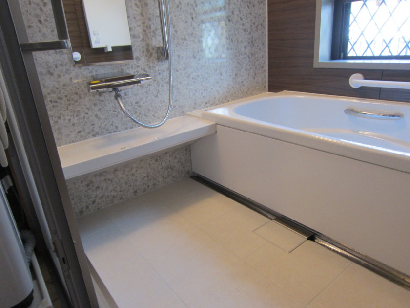 既存の浴槽にひび割れなど全体的に古くなってるところが多くなったため、ユニットバス全体の交換工事を行いました。