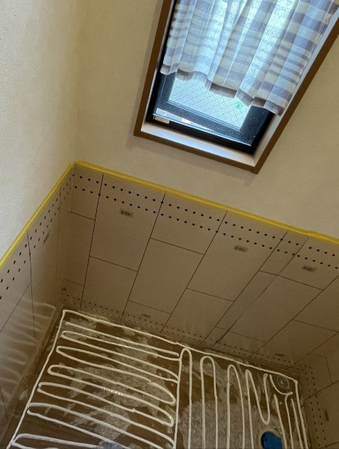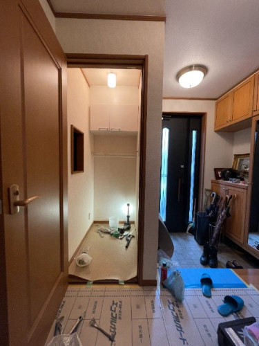 トイレの交換に伴い、床をクッションフロアからホーロークリーントイレパネルに貼りかえました。