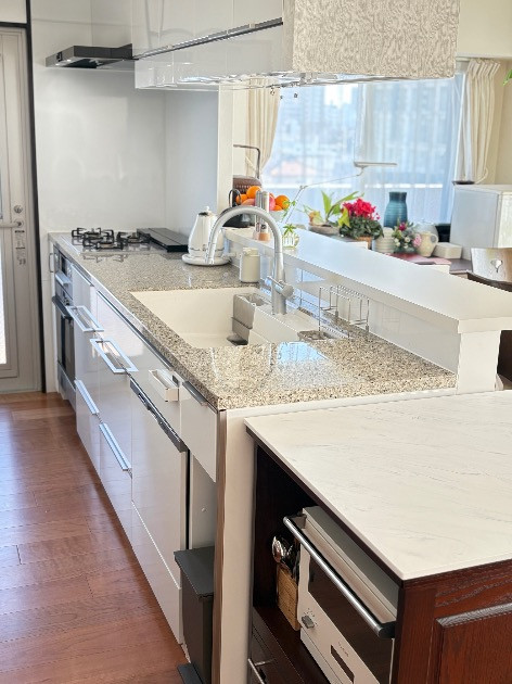 レミュー クォーツストーンが現場に高級感を演出されました。お料理がお上手なお客様でガスコンベックをセットさせて頂きました。