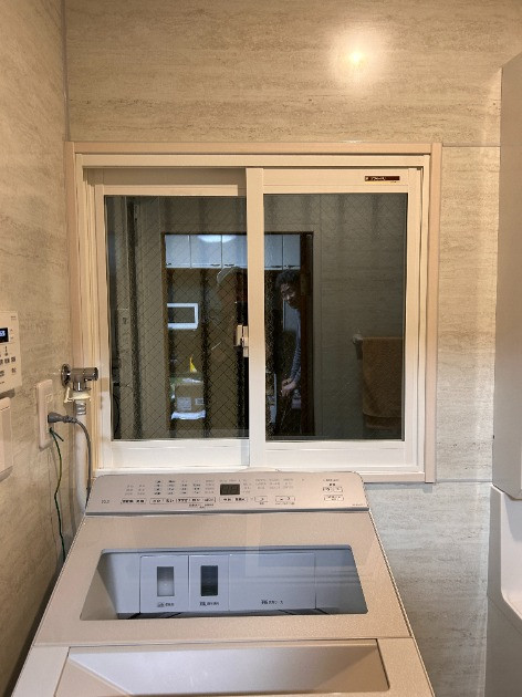窓を塞ぎ、浴室換気乾燥暖房機設置。