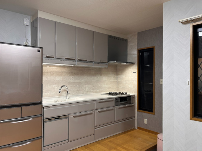 これからの暮らしをより快適に過ごせるよう、システムキッチンと洗面化粧台の入替、それに合わせて内装の一新をご依頼いただきました。