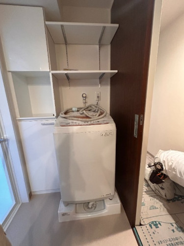 洗濯機まわりも収納がなく、日用品が片付けにくい状況でした。