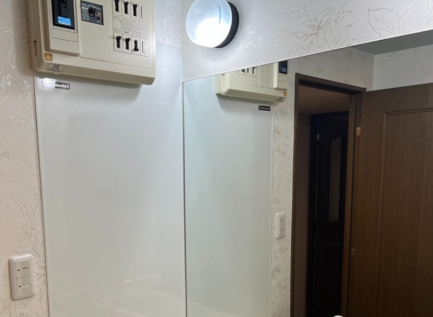 内装仕上げ・洗面ホーローパネル張り・ハンガーパイプ設置