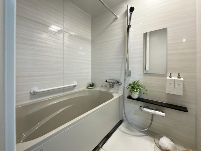 定期的に泊まりに来るご両親の為に安全な浴室にしたいご希望と、とにかく掃除を楽に!という願いを叶えるために掃除がし易い必要最低限の設備にしながらも、滑りにくいキープクリーンフロアや手摺の設置等安心してお使いいただけるようにグランスパを採用しました。築50年のマンションなので水栓の位置変更等課題もありましたが、相談を重ね使いやすく掃除もしやすい明るい浴室へと変身しました!