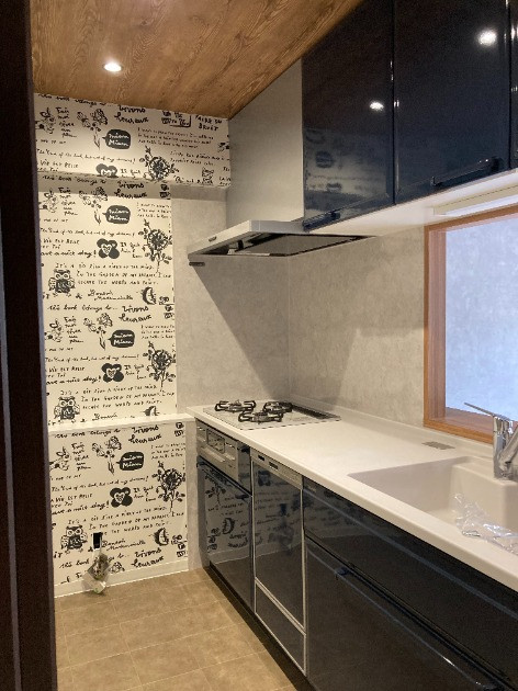 N様邸 クロスの柄とキッチンのバランスが最高です!