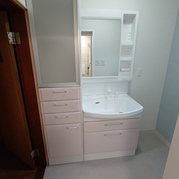 脱衣場も底冷えするとの事でこの際に床下に断熱材を施し保温性能を向上させました。浴室内と同様に脱衣場の窓も断熱窓に交換、浴室と共に暖かい空間になりました。