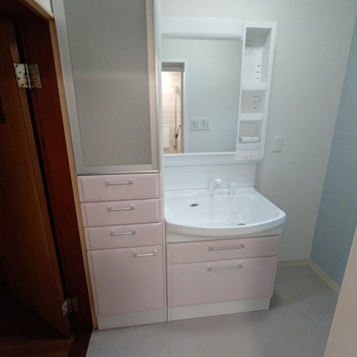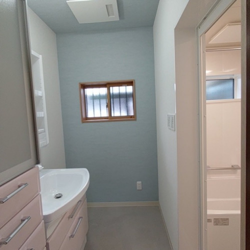 リフォーム後。脱衣場にも暖房換気扇を入れ入浴時のヒートショック事故軽減につなげました。