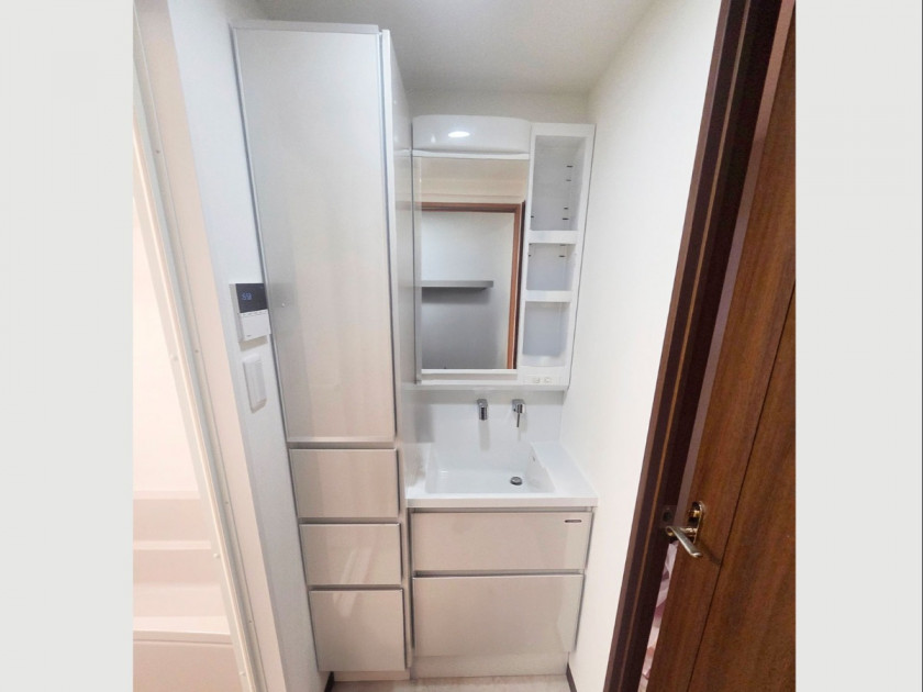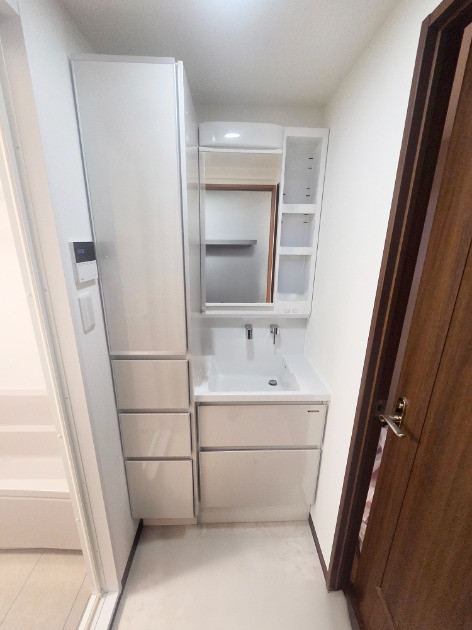 トールキャビネットで収納力バッチリな洗面リフォーム