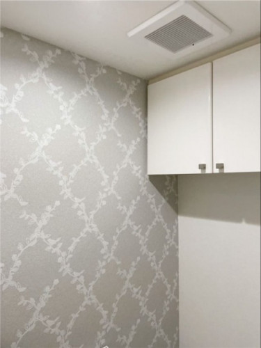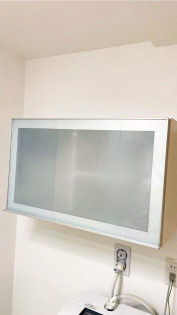 ・ランドリーウォールキャビネットを洗濯機上部に設置し収納問題を解決しました。
