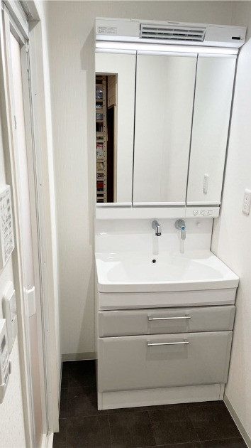 又、洗濯機の位置を変更し台所に移動することで洗面所スペースも確保しました。