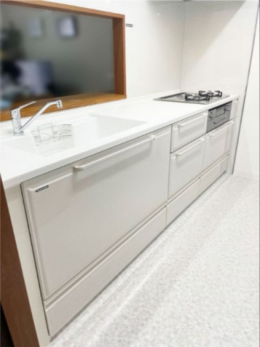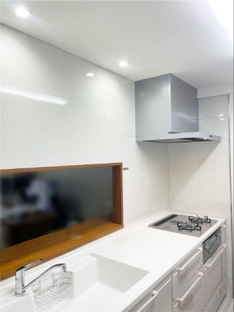 吊戸棚を撤去し圧迫感を無くして広々とした空間にしました。
