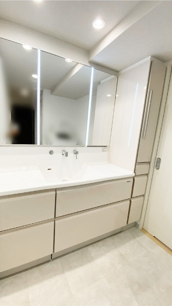 洗面台は既存の間口にピッタリ収める為に仕様を変更したり、サイドキャビネットのサイズと全体的なバランスを踏まえての工事となりました。
