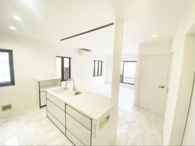 ・キッチンの間仕切りを撤去してセパレート型のキッチンの設置をしたいとの要望だったため、1Fの天井を開けて配管を施工しました