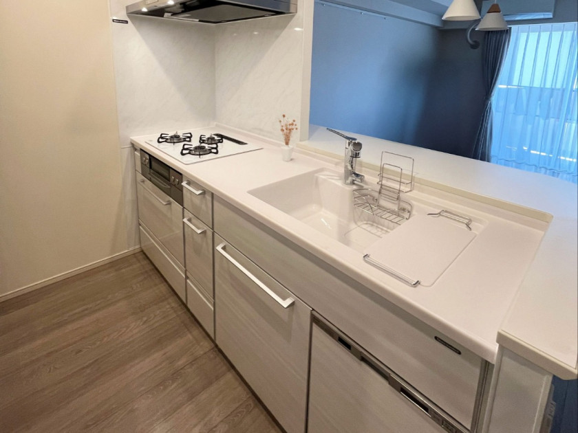 元々ついていたキッチンパネルの上から新たなキッチンパネルを貼ったことで、
