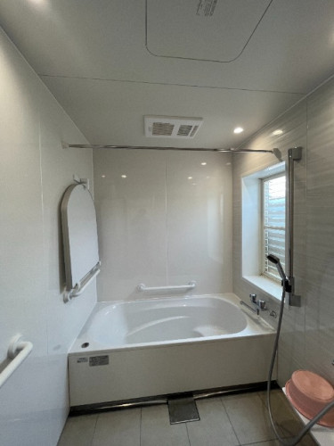 ひまわり住工房さんに見積もりをお願いしました。システムバスなのに寒いことをお伝えしてしてましたので、天井裏から原因を探ってくれました。そこから、悩みを改善するために何をしたら良いのか、丁寧に説明してもらいリフォームを決行。断熱化とバリアフリー化してもらい、とても快適なお風呂になりました。暖房機もつけたので、冬のお風呂も楽しみです♪遠方で職人さんも大変だったかと思います。お世話になりました!