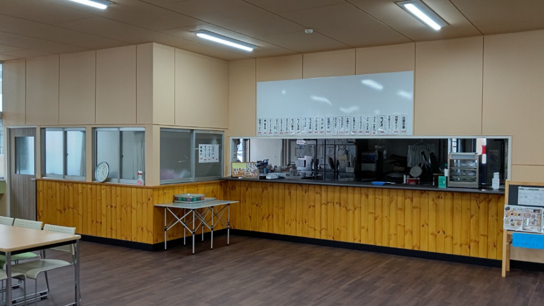 食堂と厨房の料理受け渡しカウンター上部の壁にメニューなどを磁石で貼ったり、