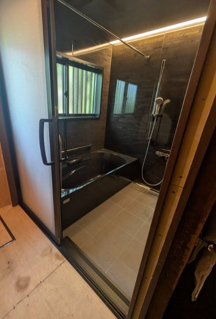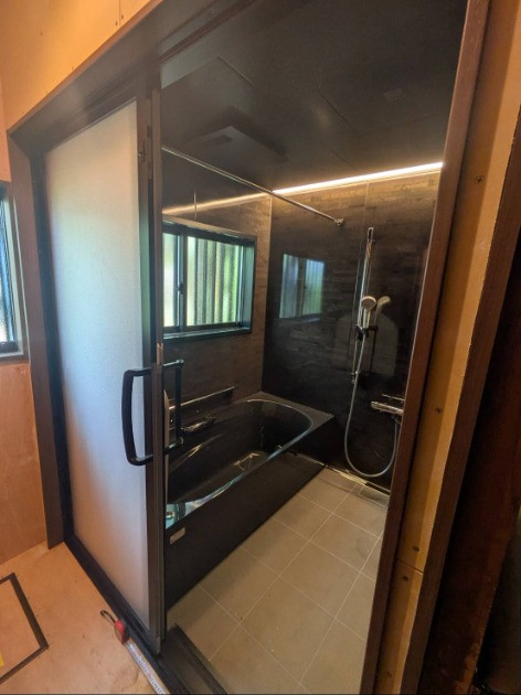 現在の在来工法の浴室を解体してシステムバスを設置します。窓も断熱性の高い窓へ交換。お施主様の希望はバリアフリーで快適に。入り口の段差はフラットになり。引戸にしてスペースを確保する。浴槽にハンドグリップ、シャワーバーは手摺兼用の設置などをご提案をしました。シロアリ防虫工事も行いました。省エネキャンペーンをご提案し、浴槽の交換や断熱窓の交換などで補助金の申請をしました。■ユニットサイズ1616・■壁:ハイクラスブリックダーク ■浴槽:シュガーラック ■床:ハイクラスカームダークグレー