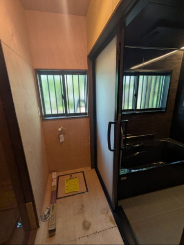 給湯器は灯油給湯器からガス給湯器へ交換します。すきま風がひどかった脱衣所の窓を断熱性の高い窓にします。