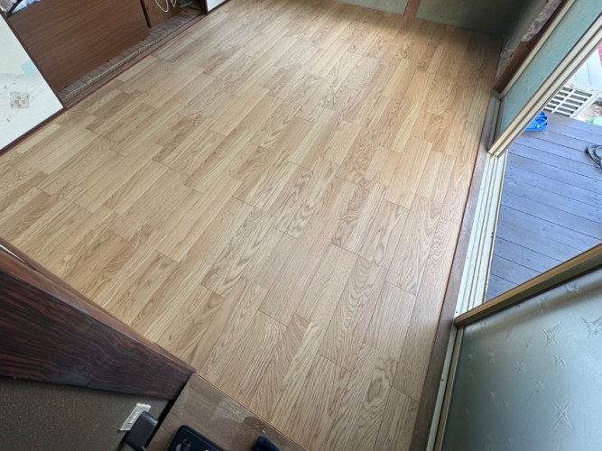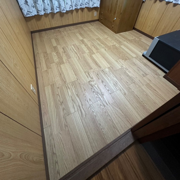 耐久性・清掃性の高い床材に張り替え、暖かく滑りにくい仕上がりに。快適な歩行感になりました。
