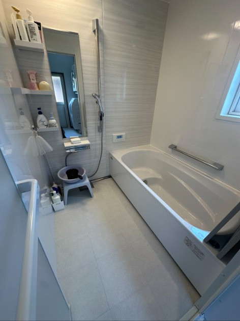 この度は大変暑い中、お風呂のリフォームをしていただき、ありがとうございました。お風呂は明るく、キレイで素晴らしい出来栄えに大満足です。気持ち良く生活していることで寿命が伸びる感じです。お掃除は簡単でラクラクです。ただ、排水溝は丁寧にすることが良いと思ってやっています。冬の入浴が大変寒く困っていたので、換気を暖房に出来るところが嬉しいです。早くこいこい冬です!!今回補助金を使わせてもらっての工事ができた事に感謝しています。様々ありがとうございました。