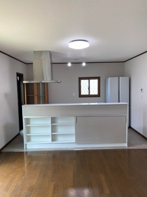現状のキッチン前面の壁を撤去して、憧れのアイランドキッチンを設置しました。