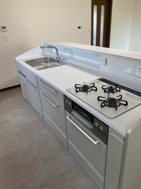 前面の壁が無くなったことで、見晴らしも良くなり、アイランドキッチンの為、2方向からの動線も可能になり、より便利に使いやすくなりました。