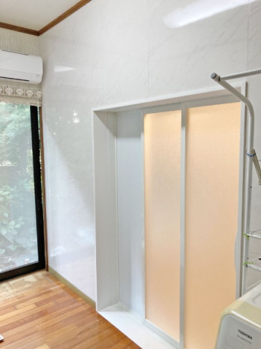 単に空間を新しくするだけでなく、お客様が心地よさと開放感を実感できるお風呂を目指し、限られた空間の中で、いかに広がりを感じていただけるか、この課題に対し、窓枠の奥行を長くする事で圧迫感を感じにくくなるよう工夫しました。また、お客様のご要望で浴槽正面にはテレビが見れるようにして欲しいとのことでしたので、FIX窓を設置し、テレビ台を造作しました。お客様のご要望をお伺いし、細部にもこだわりをもって施工を進めました。