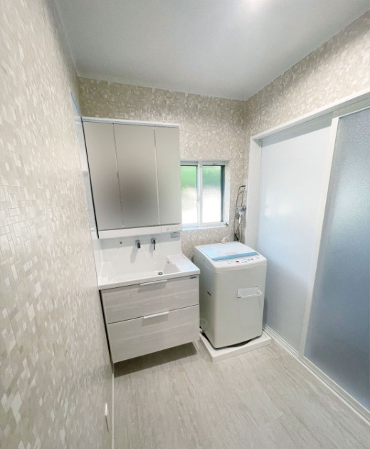 脱衣所を全面改修し、壁や床など色調を統一したことで明るく華やかな印象となっただけでなく、