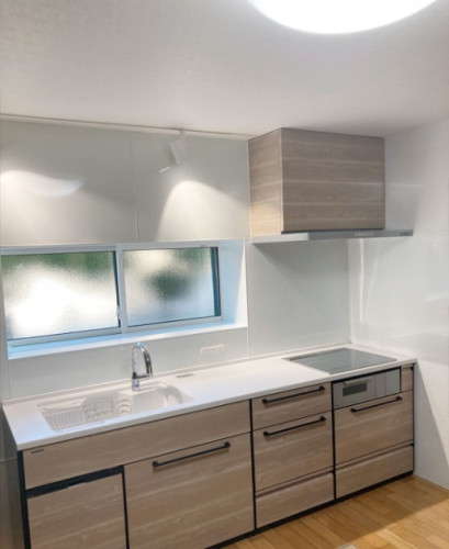リフォームに合わせ、キッチン周りの天井クロスも新調し、より明るく清潔感のある調理空間へ。また、ガスコンロからIHへ変更されたことでお手入れもしやすくなりました。