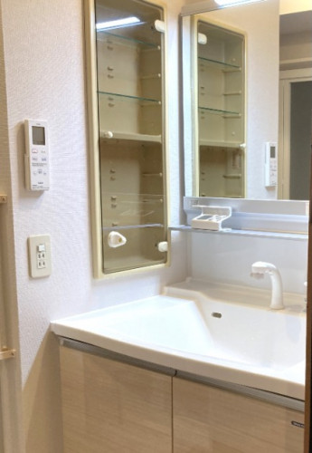 鏡のサイズがぴったりで洗面ボウルも広く、清掃性も良いので