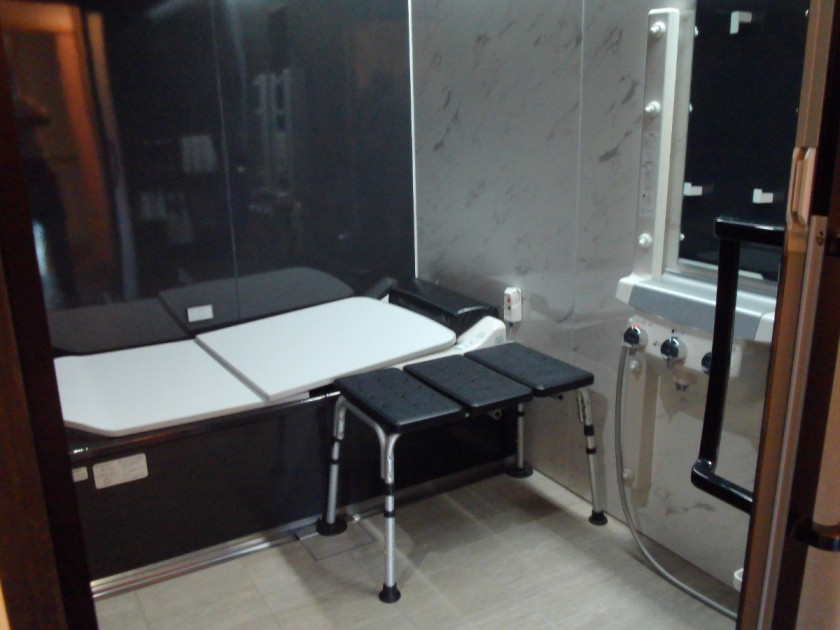 現在も古いユニットですがバリアフリーにはなっておらず、車いす生活の家族にとっては最適です。浴室内の向き変更により入りやすくなった。