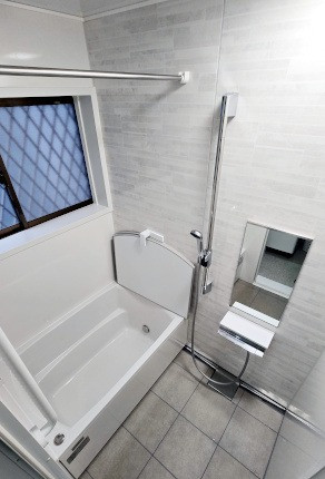在来工法の浴室からユニットバスへリフォーム(給湯器の交換も含む)をさせていただきました。既存の浴室を解体すると下地の木材が腐食していたため、しっかり補強をした上で新しいユニットバスを設置したので、建物全体の強度のアップやシロアリ被害のリスクも軽減でき、快適な浴室になったと思います。