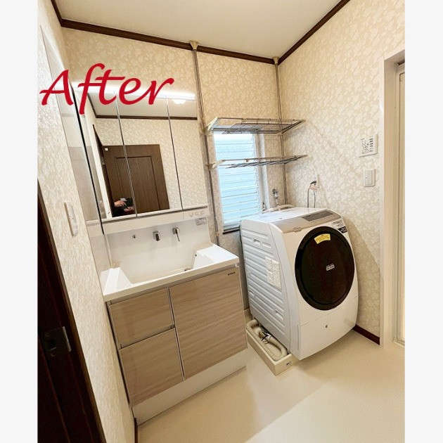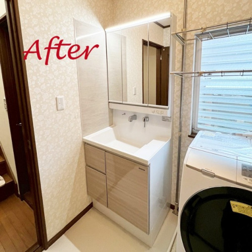 タカラ 洗面化粧台交換+クロス・床クッションフロア張替工事 ~納得のファミーユシリーズ~