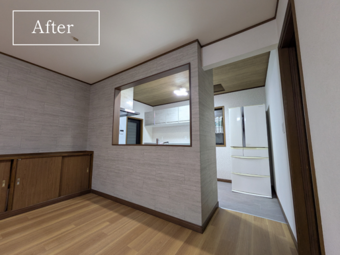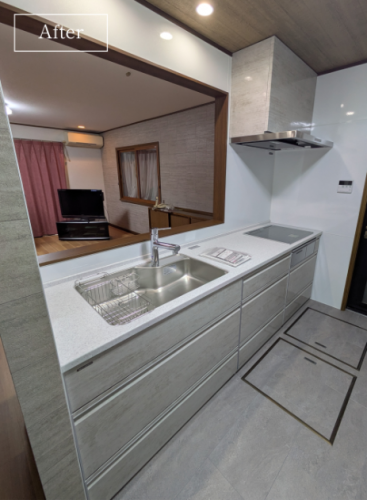 お掃除のしやすさとキッチン収納を増やしたいというご要望をいただきました。また、「下がり壁を撤去して空間を広く見せたい」とのご相談もございましたが、梁があるため、全て撤去はできませんでした。その中でも可能な限り施工を行い、以前より広く、そして明るく感じられるキッチンへと生まれ変わりました。背面収納にはコンセントを増やし、より便利に使用できるようになりました。