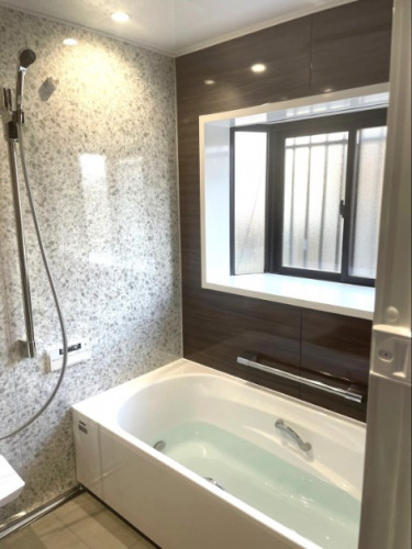 お掃除のしやすさならタカラスタンダードの人気大浴槽+磁気タイルの組み合わせが最高!お風呂と出窓が凄く大きかったためそれを活かし出窓の地下を作り直しました。