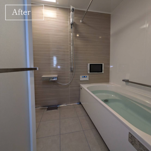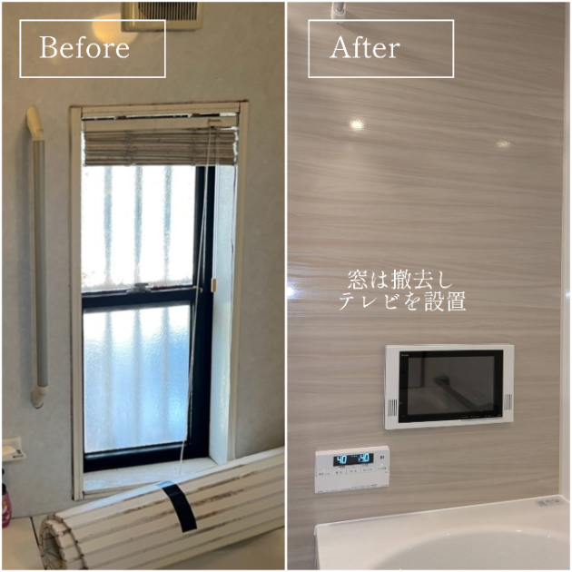 また窓は使用していないとのことだったので撤去!その結果 浴室のテレビを設置することができ、快適にご使用いただけるようになりました。