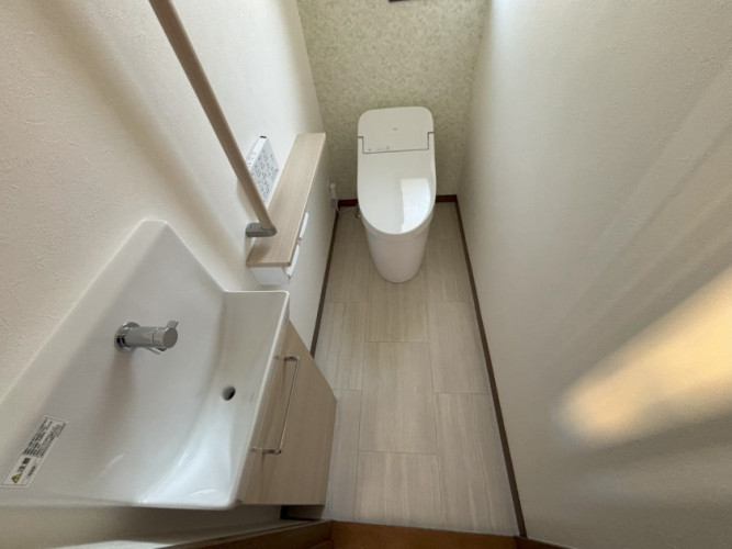 2階トイレは家族だけの使用を想定しタンク付き機種を選択。