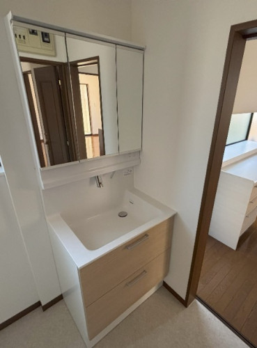 1階洗面台は小物を収納するため洗面化粧台を選択。