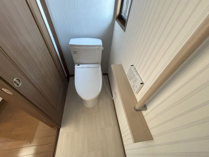 手すり・個物置き棚を取付し使い勝手が向上しました。