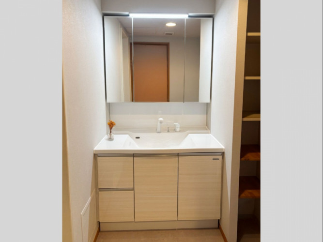 洗面が特殊なサイズのため、収納等いれることも考えていましたが、