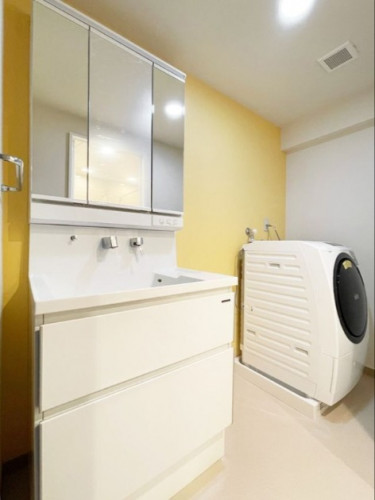 こだわった配色のお風呂と洗面!イエローが素敵な空間に