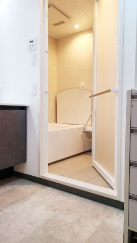 ドキドキしながら目を開けると、そこはショールームの空間✨もう胸がいっぱいで言葉にならず涙が止まりませんでした…。 明るく温かみのある色合いのピカピカのお風呂は癒しの空間。お風呂の床と洗面所のクッションフロアのタイルの大きさが偶然合っていたのも嬉しい発見でした。 素敵なお風呂と出っ張りが無く格段に広くなった洗面所は想像を遥かに超えた空間になりました。当分の間は入室する毎にウットリして時間を忘れてしまいそうです。本当にありがとうございます。