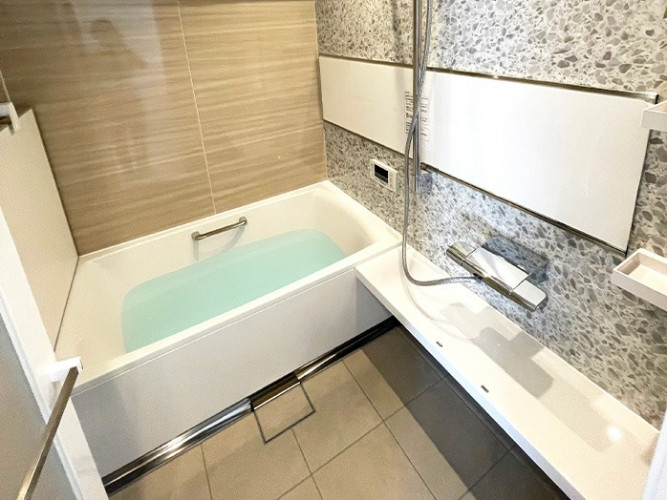 商品はタカラスタンダードの伸びの美浴室を採用され、パネルには「ホーロー」が使われています。