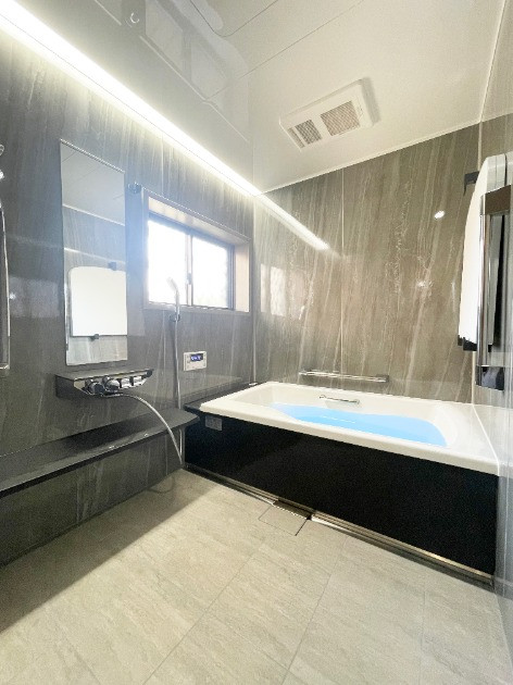 落ち着いた空間ながらも、かっこいいお風呂空間となりました。