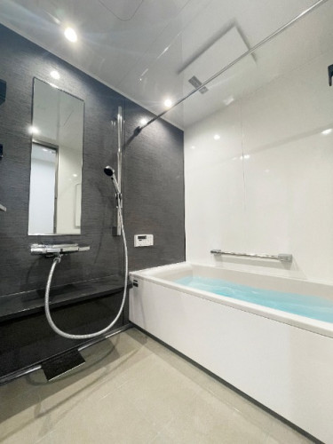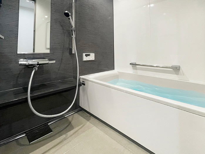 浴室はタカラスタンダードのグランスパを採用され、独自のホーロークリーン浴室パネルは汚れや傷に強いだけでなく、マグネット収納としても活用できお掃除も楽になる機能を兼ね備えています。