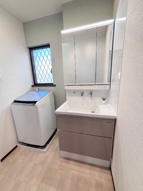 すっきりと清潔感があり、収納力・清掃性抜群の使い勝手の良い洗面台が完成しました。
