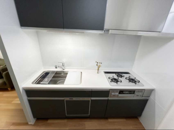 パネルもマグネットがつくタイプになり、お手入れのしやすいキッチンとなりました。