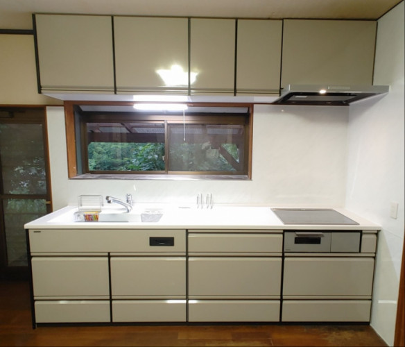 システムキッチンが老朽化し、ガスコンロも使えない箇所があったり、扉が外れたり剥がれたりしていたのでリフォームをしようと思いました。