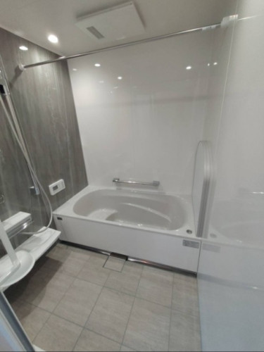 グレーでコーディネートされたスタイリッシュなシステムバスに仕上がりました。
